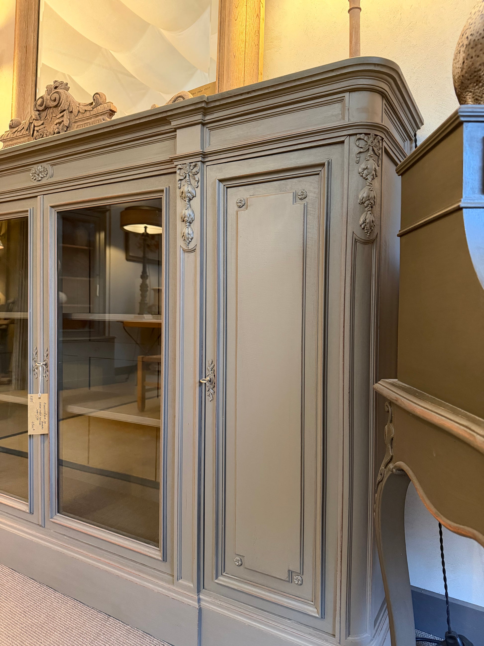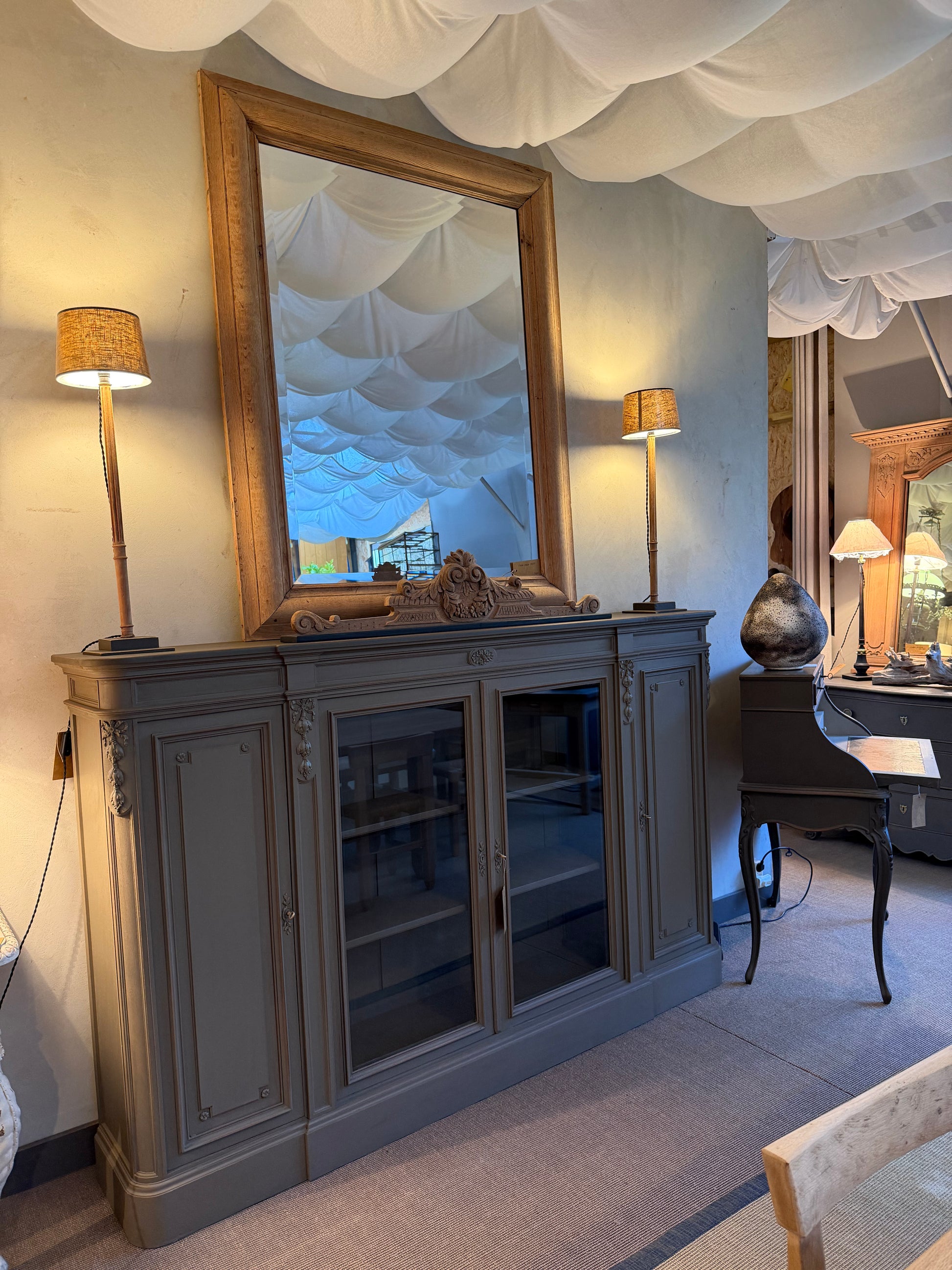 Bibliothèque de bureau en acajou massif patinée – Début XXᵉ